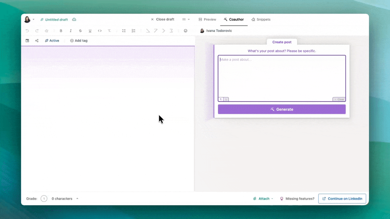 Coauthor is our AI writing assistant built into your AuthoredUp editor.